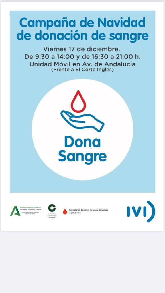 La Asociación de Donantes de Sangre de Málaga La Gota Roja, el Centro de Transfusión, Tejidos y Células de Málaga, el Círculo Empresarial de Málaga y IVI Málaga organizan en el centro de la capital malagueña su ya tradicional Campaña Especial de Navidad, que tiene como objetivo anticiparse y reforzar las reservas de componentes sanguíneos con vistas al periodo festivo.