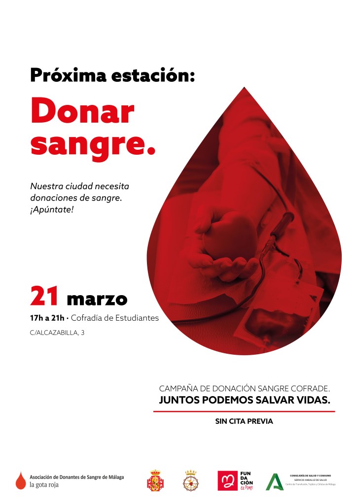 Así, la cofradía de Estudiantes abre sus puertas a esta acción socio-sanitaria, el 21 marzo en horario de 17.00 a 21.00 horas. y se suman a la iniciativa que durante este mes se está llevando a cabo en otras cofradías de Málaga y provincia. En estas fechas festivas, menos personas vienen a dar y por eso es importante reforzar las reservas ya a partir de este mes de marzo.